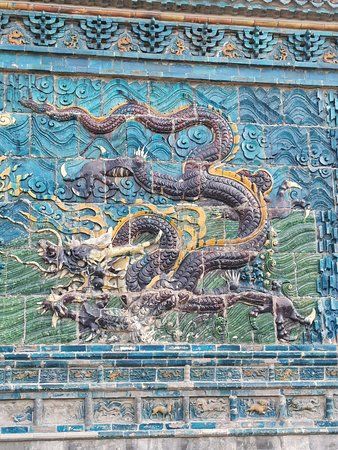 The Nine Dragon Screen is a famous spirit wall built in 1392 during the Ming dynasty. It features nine colorful dragons and is the largest of its kind in China, serving as a protector against spirits.