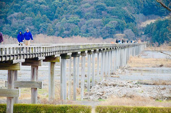 Horai Bridge is a historic, massive footbridge in Shimada, Japan, offering scenic views and cultural significance in Shizuoka Prefecture.