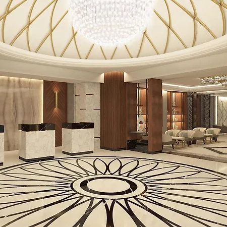 The architecture showcases a blend of traditional and modern styles, with a large dome and minarets.