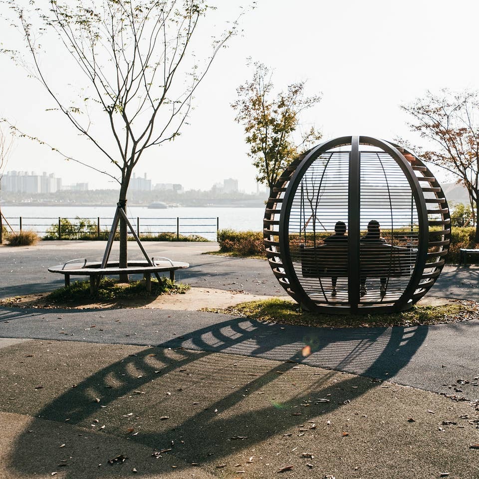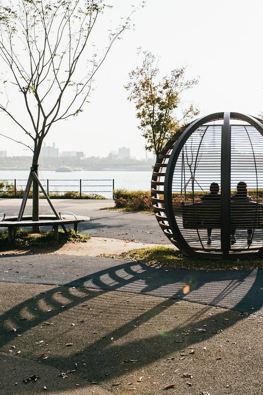 Mangwon Hangang Park is one of many parks along the Han River, contributing to a 500 km long riverside park system.