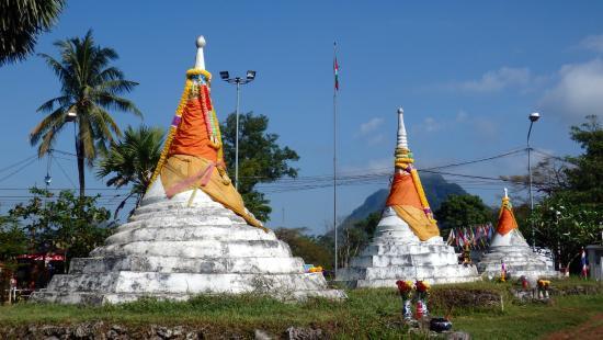 Three Pagodas Pass features ancient stupa ruins set against stunning mountain views. This site is significant as it marks the border between Thailand and Myanmar, making it an important historical and cultural location.