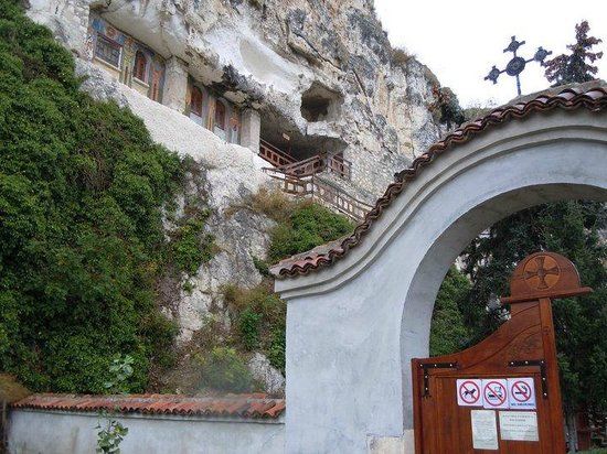 St. Dimitrii of Basarbovo Monastery is a historic site carved into cliffs near Ruse, Bulgaria. It is known for its beautiful frescoes and peaceful surroundings, making it a popular spot for visitors seeking tranquility.