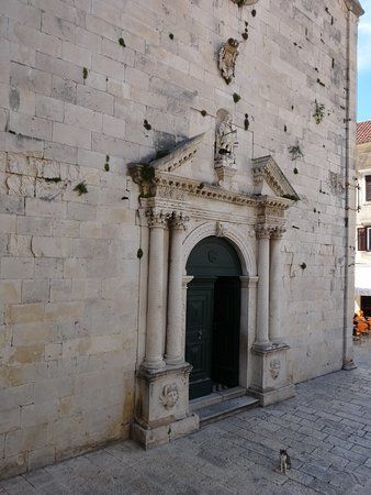 The Parish church of St. Michael in Omiš, Croatia, is a 17th-century church known for its ornate entrance and unique architectural features.