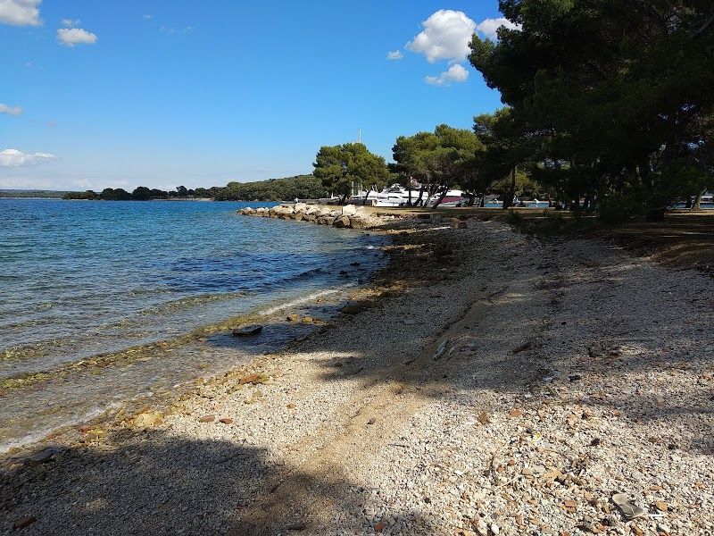 Peroj Beach in Fazana, Croatia offers a tranquil atmosphere with clear waters, pebble shores, and nearby pine forests ideal for sunbathing and relaxation.