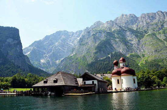 Konigssee is a beautiful, clear lake in Schönau am Königsee, Bavaria. It features boat rides and the famous St. Bartholomew's church on its peninsula, making it a scenic and memorable destination.