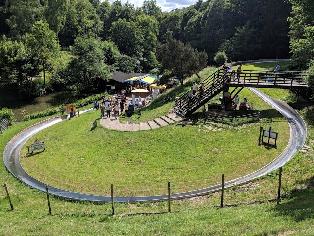 Sommerrodelbahn in Altenahr is a summer toboggan run that offers fun sledding without snow. Riders go up 200 meters on a lift and then zoom down 550 meters through seven curves, making it a thrilling experience for all ages.