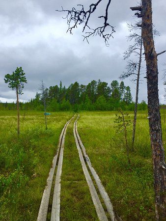 Treriksroysa is where the borders of Sweden, Norway, and Finland meet. This small yellow dome-shaped monument sits in Lake Goldajarvi and marks a unique geographical point.
