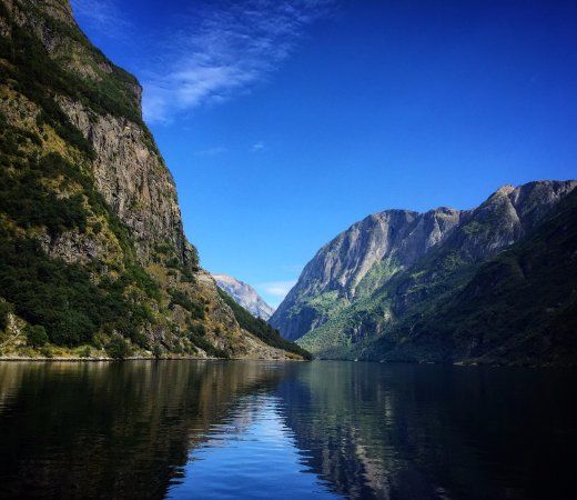 Fergereise pa Naeroyfjorden til Kaupanger med Fjord2 is a stunning ferry ride through beautiful fjords in Norway. It offers amazing views of nature, steep cliffs, and waterfalls that make the journey unforgettable.