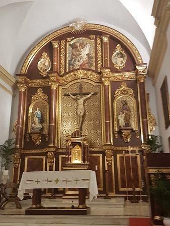 The Church of San Antonio is a Catholic church in Frigiliana, Spain. It features a historic bell tower and an ornately decorated altar, making it a beautiful place to visit.