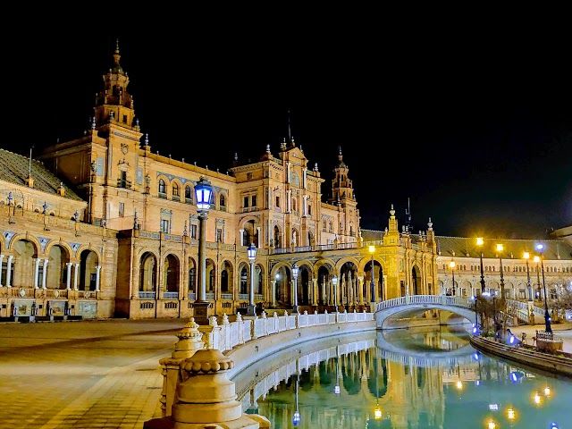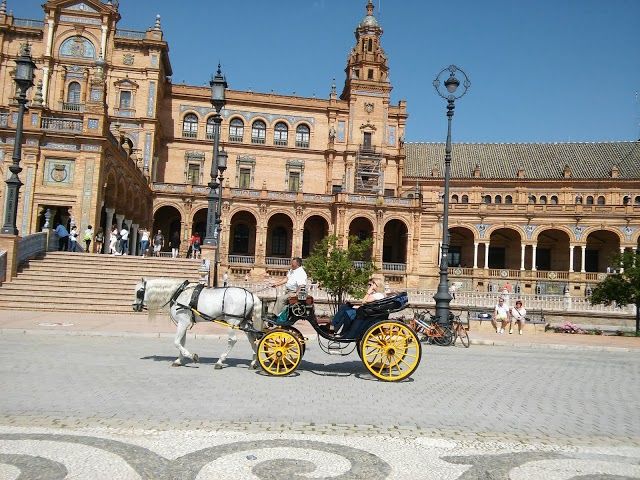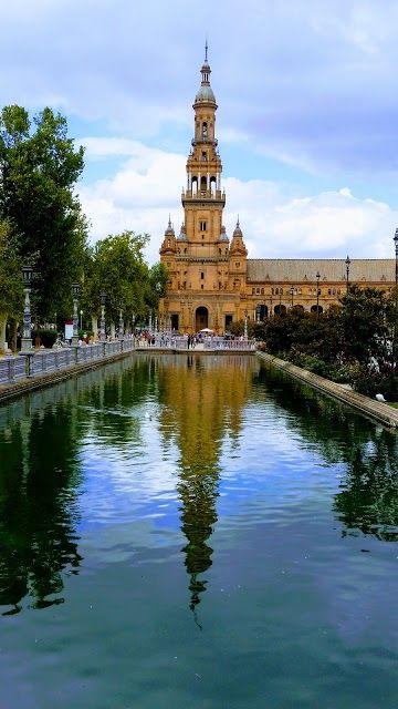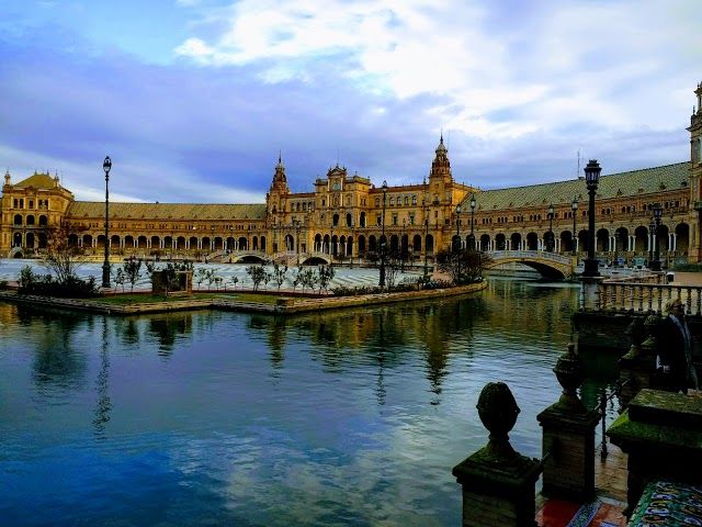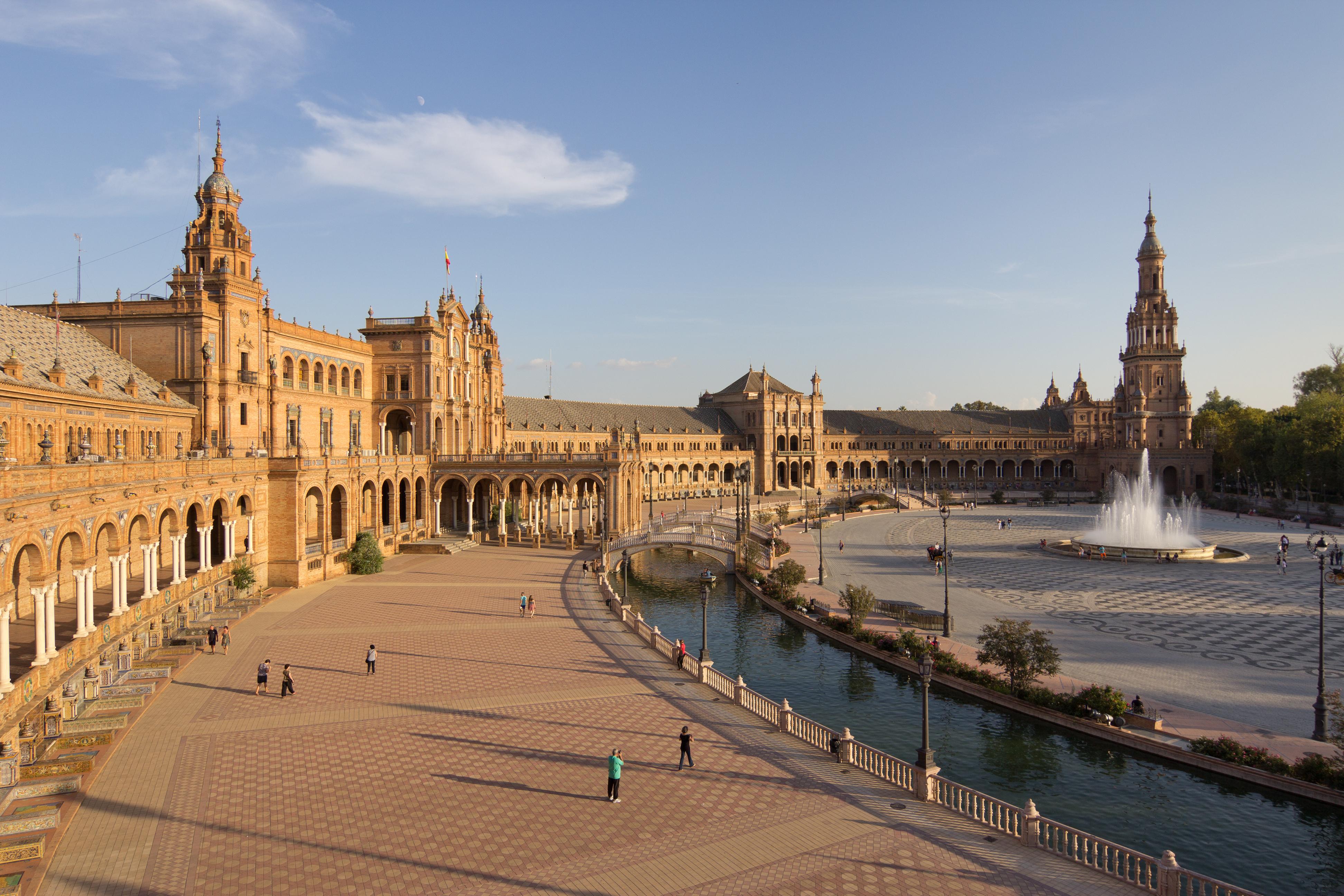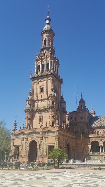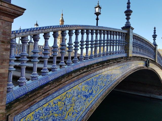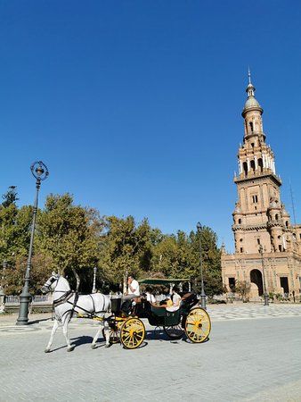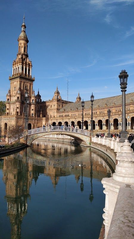Plaza de España is a grand square in Seville known for its stunning architecture and vibrant tiles. It features beautiful fountains, mini-canals, and tiled alcoves representing each Spanish province.