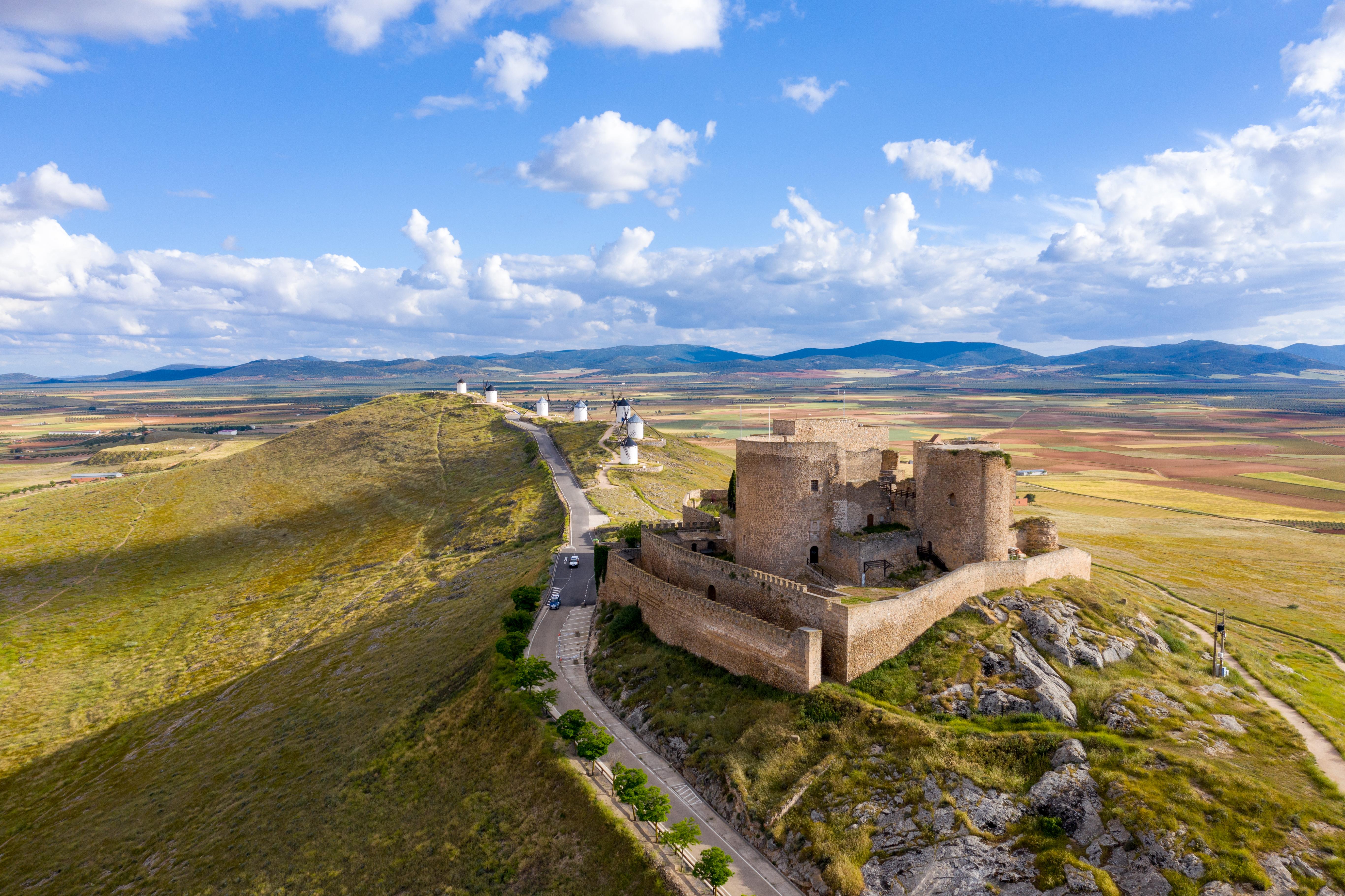 The windmills in Consuegra are iconic symbols of Spain. Twelve windmills and a large castle sit on hill Calderico, creating a stunning view that captures both history and culture.