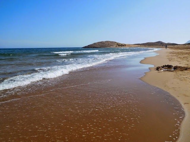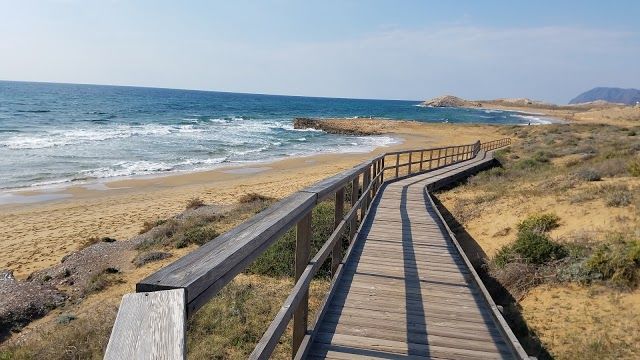 Playa de Calblanque is a secluded beach in Cabo de Palos, Spain, known for clear waters, scenic walking paths, and dog-friendly areas.