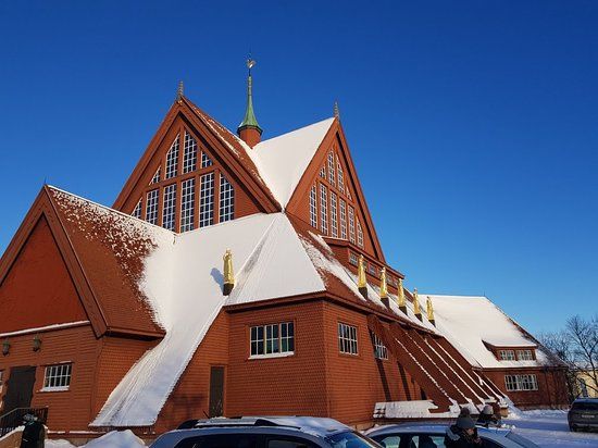 Kiruna Church, a large wooden Gothic Revival church in Kiruna, Sweden, features an art nouveau altar and resembles a Sami kåta, built in 1913.