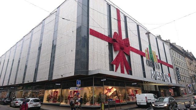 Manor Geneve, Switzerland's leading department store, offers over 22,000 m² of shopping across six floors, with a variety of products and a panoramic cafeteria.