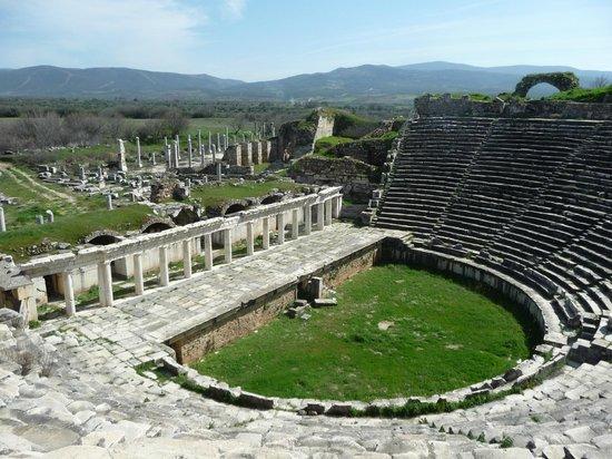 Aphrodisias is an ancient Greek city known for its stunning ruins. Highlights include the well-preserved city walls, the Temple of Aphrodite, and a grand theater, providing a glimpse into its rich history.