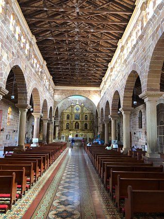 Catedral de la Inmaculada Concepcion is an 18th-century sandstone church in Barichara, Colombia. Its golden stonework contrasts beautifully with the whitewashed houses around it and features a rare clerestory in its design.
