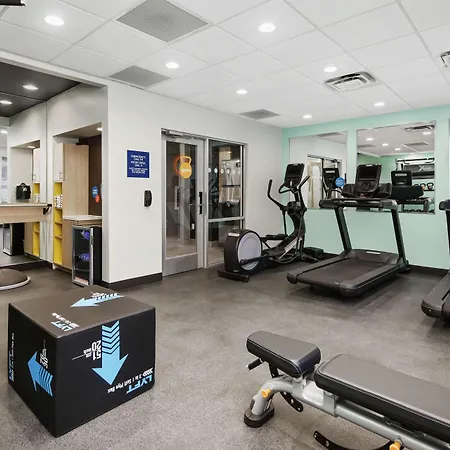 Guests can work out in a fitness center during their stay.