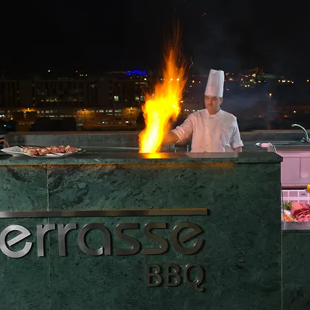 The à la carte La Terrasse restaurant is a great feature of the Two Seasons Hotel & Apartments Dubai. Such food, as snacks and sushi, is available in the lounge bar. Guests can enjoy stunning views from this bar.