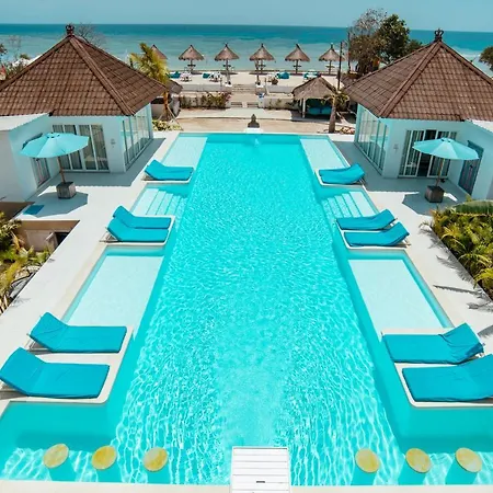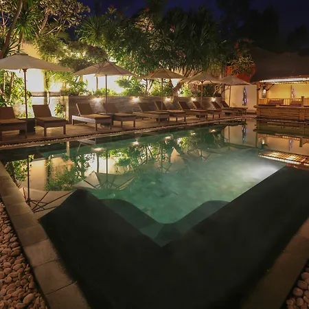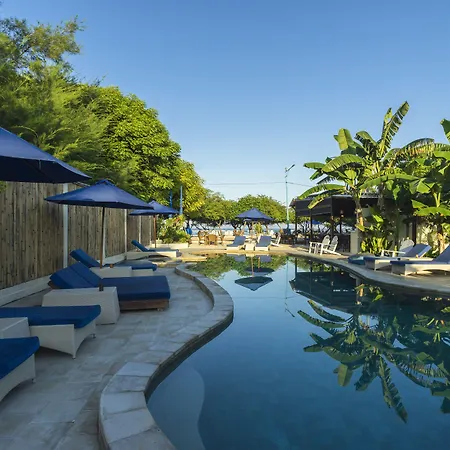 Offering a diving center, spa therapy, and recreational facilities, and views of the garden, the 4-star Villa Almarik Resort Gili Trawangan is located 10 minutes' walk from Shark Point. Providing access to a swimming pool as well as snorkeling and horse riding, this resort is located just near the back Gili Meno Island.