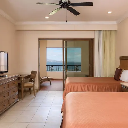 Family Villa Del Palmar At The Islands Of Loreto Loreto features 181 rooms equipped with a flat-screen TV with satellite channels as well as a mini bar fridge and tea/coffee making equipment. Separate bathrooms also include a drier and bathrobes. The stylish hotel offers views of the pool from these rooms.