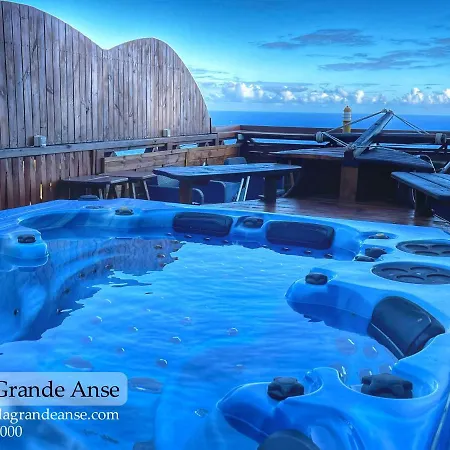 The Villa Grande L'Anse offers rooms with a balcony and a seating area featuring air conditioning, along with a flat-screen TV with satellite channels. For your comfort, you will find a microwave oven, a fridge, and a kitchenware.