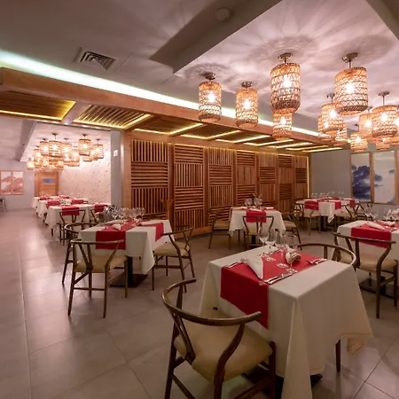 Overlooking the pool, the 339 rooms are appointed with climate control, as well as modern facilities such as a TV. The rooms have additional safe bathrooms, where guests can use a bathtub, a sauna, and a shower.