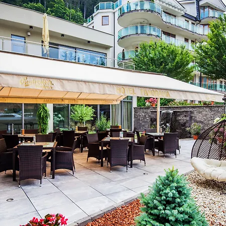 Located merely 900 feet from Bazen Grand, the 4-star Wellness Hotel Panorama Martinske Hole is approximately a 5-minute walk from Kostol sv. Stefana Catholic Church. Featuring an à la carte restaurant, the non-smoking hotel is located just near Kupele Trencianske Teplice and offers a hot tub and a sauna.