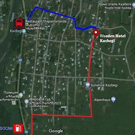 The center of Kazbegi can be reached within a 10-minute walk. The Wooden Hotel in Kazbegi is 2 miles from Amazing view of the church.