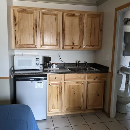 A microwave, a freezer, and a stovetop are featured in the rooms.